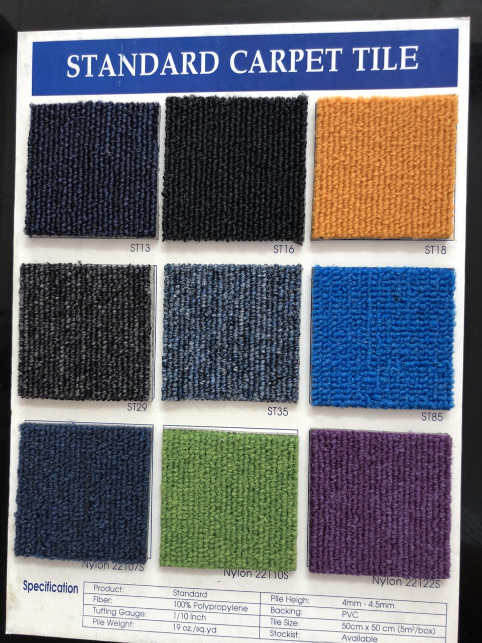 Thảm gạch Standard pp trải sàn nhà dạng viên, rất tiện lợi cho khách hàng. Đây là dòng thảm tấm ghép 50cm x 50cm lại với nhau phù hợp với văn phòng làm việc, shop, sảnh, hội trường và trường học.